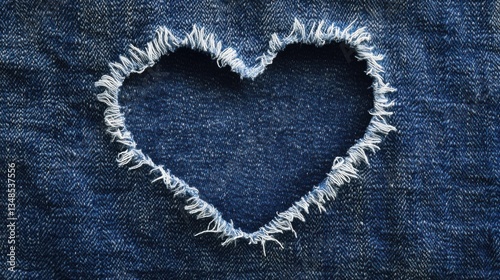 Corazón de mezclilla, estilo de moda, tela desgastada