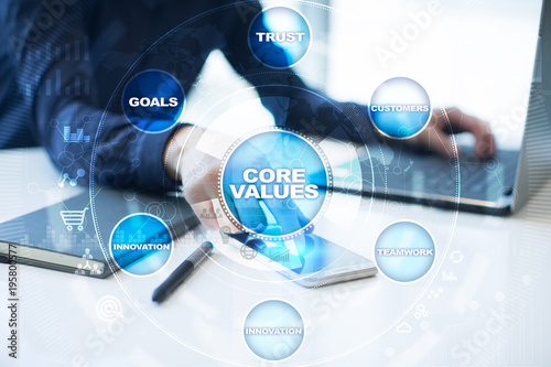 Core values business and technology concept on the virtual screen.