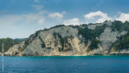Corfu, Paxos Coast, high cliffs over the blue sea.