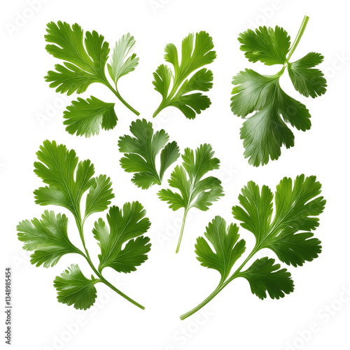 Coriander Greenery: A collection of fresh coriander leaves, showcasing their vibrant green hues and delicate, finely-lobed structure.