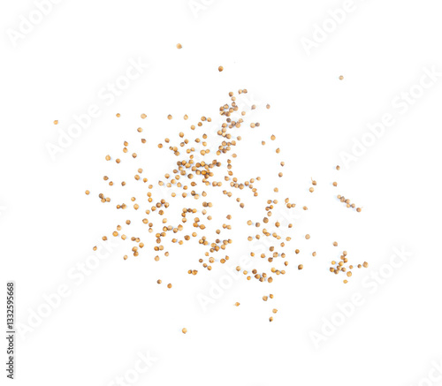 Coriander Seeds Isolated, Cilantro Grains, Chinese Parsley Seed Group, Dry Spices, Seasonings