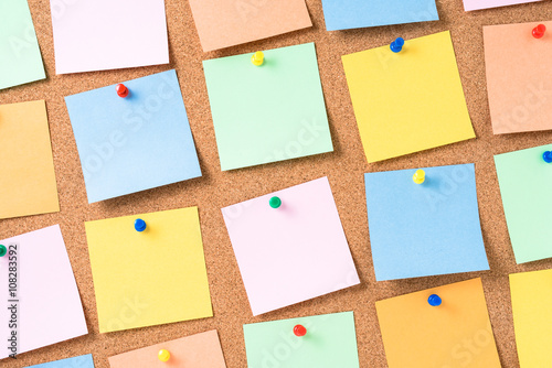 Cork board with colorful blank notes
