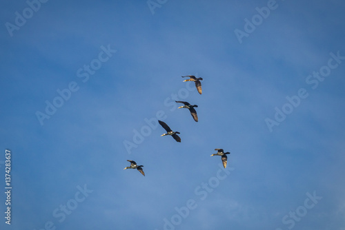 Cormorants in Flight Against Clear Blue Sky – Wild Birds in Motion Photography