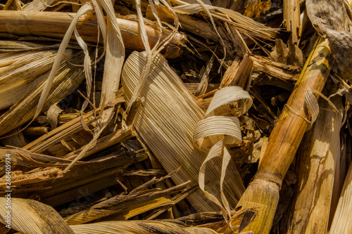 Corn Husks and Stalks Lie in a Field after Harvest