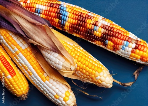 Corn Maize Dried Cob Husk Colorful Kernel Harvest Fall Autumn Background Image