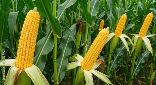 Corn stalks with ripe yellow ears