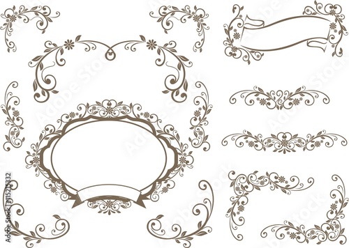 Corner gold.Page decoration. Decorative frame floral elements, Set of corners and borders.flower corner linear decorative elements.Set of Black