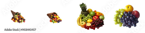 Cornucopia abundance, fruit arrangement, still life medley, cut out transparent