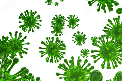 Corona Virus covid-19 In Green on white background ,Microbiology And Virology Concept - 3d Rendering