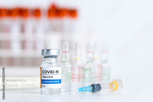 Coronavirus Covid-19 Vaccine vial glass bottles and syringe.