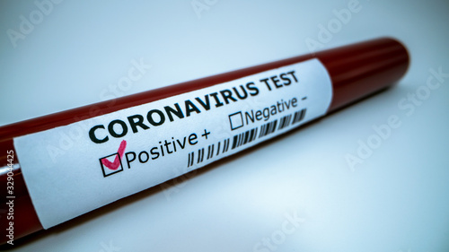 Coronavirus infected blood sample in tube. Vaccine research of Covid-19