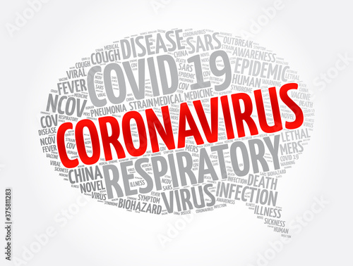Coronavirus message bubble word cloud collage, health concept background