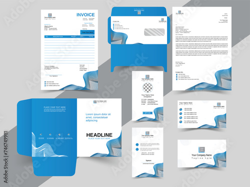 Corporate Modern Stationery mockup template of Invoice, File floder, Id card,Business card, Letterhead and Envelope