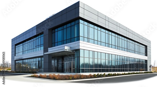 corporate building with sleek metal and glass design isolated on white background