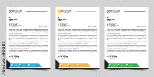Corporate business letterhead design template with color variation bundle. Print-ready vector design