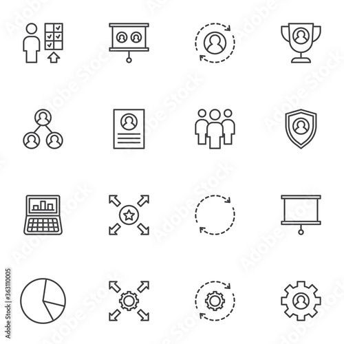 Corporate business line icons set, outline vector symbol collection, linear style pictogram pack. Signs, logo illustration. Set includes icons as business management, workgroup, personal skills