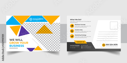 Corporate business postcard template design set with blue, yellow, red, and green colors. digital marketing agency postcard, business marketing postcard set, vector illustration