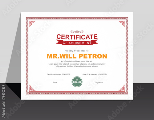 Corporate Certificate Appreciation & Achievement Modern and Creative Vector Template With Frame, Border, light Guilloche pattern (watermark)