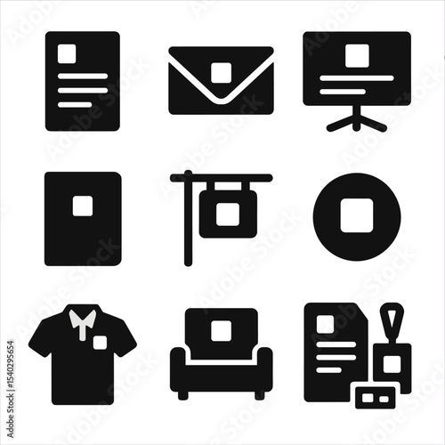 Corporate Identity Icons. Solid, filled icons set of corporate identity design: letterhead, envelope,