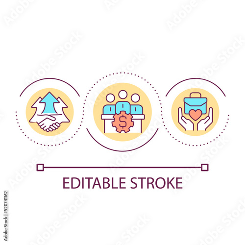 Corporate social responsibility loop concept icon. Ethical teamwork abstract idea thin line illustration. Work ethic. Business environment. Isolated outline drawing. Editable stroke. Arial font used