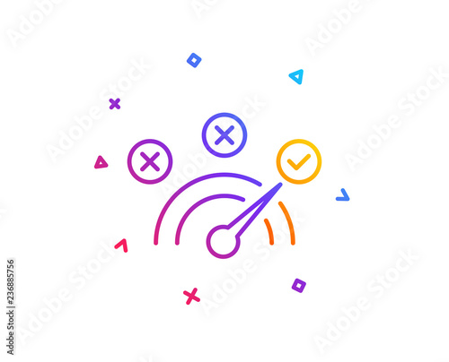 Correct answer line icon. Speedometer concept sign. Check symbol. Gradient line button. Correct answer icon design. Colorful geometric shapes. Vector
