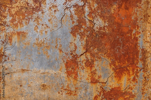Corroded iron surface with peeling paint and flaky texture