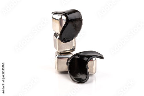 Cosmetic skincare background. Gel eye patches and silver stones. The concept of the Skincare Anti aging, anti wrinkle.