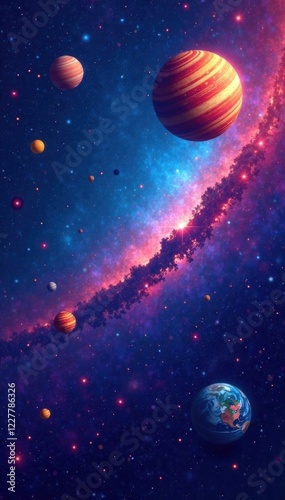 Cosmic abstract vector background with stars, planets, and galaxies, cosmos, planets, vector