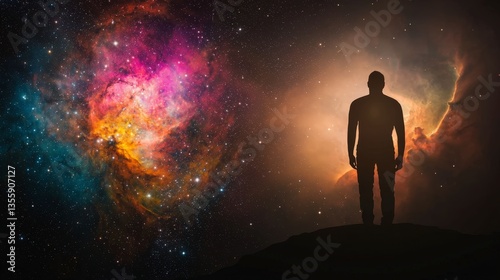 Cosmic Awe Silhouette Man Gazing at Nebula