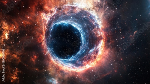 Cosmic Black Hole Surrounded by Colorful Stellar Nebula Visualization