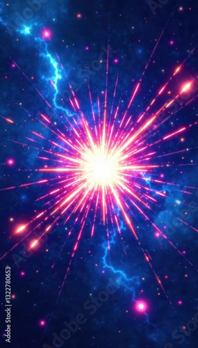 Cosmic blue explosion, fun dot pattern, comic style, anime aesthetic , explosion, comic