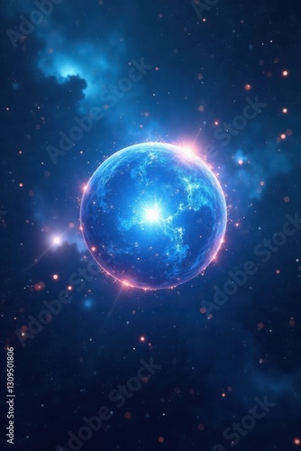 Cosmic blue nebula explosion, glowing plasma energy ball , power, lightning