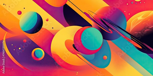 Cosmic Collision Colorful Abstract Planets in Diagonal Harmony.