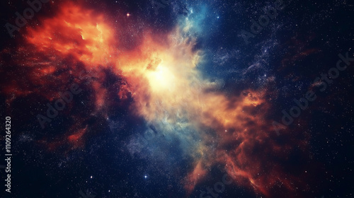 Cosmic Collision, Nebula Explosion in Deep Space. Concept of creation, destruction, and the vastness of the universe.
