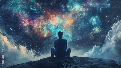 Cosmic Contemplation: A Solitary Figure Gazes Upon the Starry Expanse