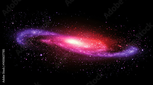 Cosmic Dance: A vibrant, swirling galaxy with a luminous red core and purple arms dances amidst a field of twinkling stars. The celestial body creates a sense of awe and wonder.