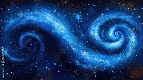 Cosmic Dance Two Intertwined Spiral Galaxies in Vibrant Blue Nebula