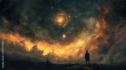Cosmic Dream: A Solitary Figure Contemplates the Vastness of Space