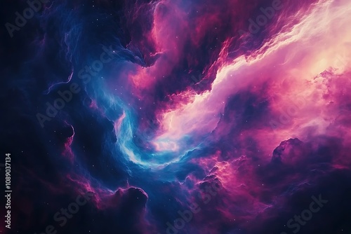 Cosmic Dreamscape: A vibrant nebula in shades of pink, purple, and blue. Celestial swirls and cosmic dust create a mesmerizing, dreamlike space art image.