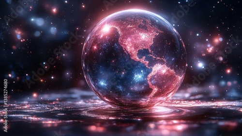 Cosmic Earth: A Glowing Orb Reflecting in a Starry Sea
