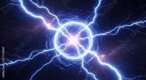 Cosmic Energy Orb Surrounded by Electric Lightning Strikes in Deep Space