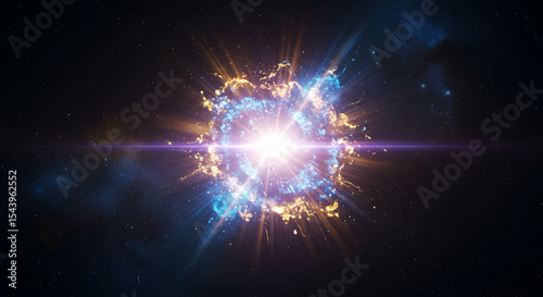Cosmic Explosion: A breathtaking depiction of a cosmic explosion, showcasing vibrant bursts of energy, with light and color, amidst the backdrop of the dark expanse of space.