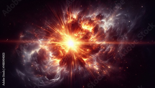 Cosmic Explosion: A vibrant, fiery explosion in space, showcasing a breathtaking display of energy and light against a dark backdrop.