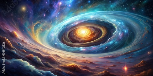 Cosmic Eye A Digital Painting of a swirling nebula with a bright core, and distant galaxies, digital art, space art, nebula, space, galaxy