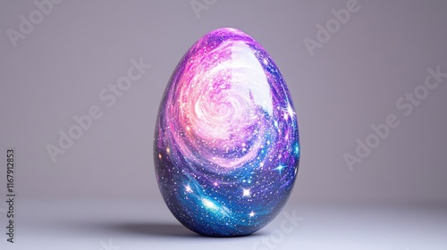 Cosmic galaxy egg with swirling nebula and stars against gray background