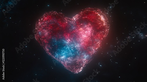 Cosmic Heart Nebula Celestial Love in Red and Blue Hues