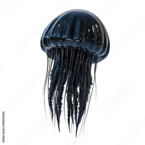 Cosmic Jellyfish A mesmerizing 3D render of a dark glistening jellyfish on transparent background