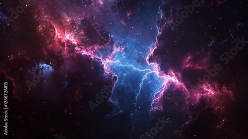 Cosmic Nebula Cloud Formation with Lightning Streaks in Deep Space