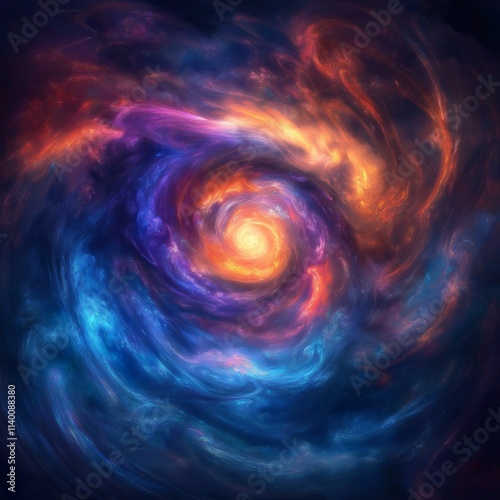 Cosmic Nebula Swirl: A mesmerizing digital art piece depicting a vibrant nebula with swirling colors of blue, orange, and purple, creating a captivating cosmic vortex.