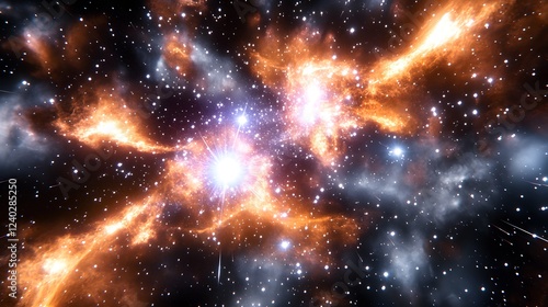 Cosmic Nebula, Vibrant Orange and Blue Space Scene